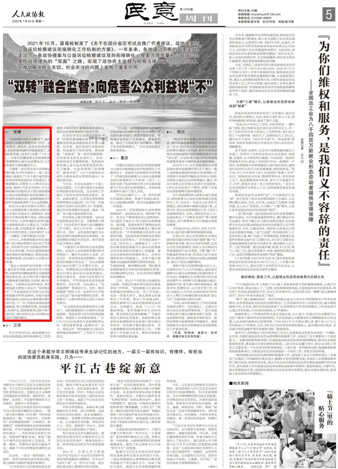 2021年10月,最高检制发了《关于在部分省区市试点推广代表建议、政协提案与公益诉讼检察建议衔接转化工作机制的方案》。一年多来,各地通过不断的探索实践,走出了一条政协提案与公益诉讼检察建议双向衔接转化,提案办理质量和公益诉讼办案质效双提升的“双赢”之路,实现了政协民主监督与检察法律监督1+1>2的效果,在推动解决群众关切、社会关注的问题上发挥了重要作用。