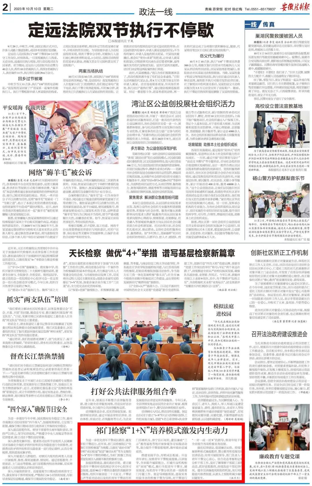 为进一步优化青年干警成长路径、激发年轻干警活力,近年来,祁门县检察院以“党旗红引领检察蓝”为统揽、以强化“政治引领”厚植“成长根基”促进“廉洁从检”等为支撑的“1+N”青年干警培养模式,为祁门检察工作高质量发展注入源源不断的检察新力量。