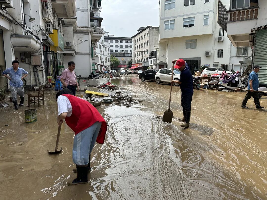 21日,歙县人民检察院到包保小区开展清淤工作,全力支持恢复正常生产生活。