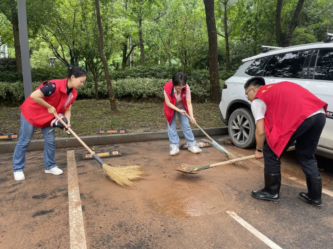 6月21日,黄山市人民检察院组织干警志愿者,从“家门口”开始,清洁打扫包保的辖区内部分小区大门及周边的垃圾、淤泥。