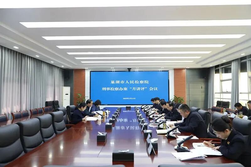 3月11日,安徽省巢湖市检察院召开刑事检察办案“月讲评”例会,通过自评、互评、点评已办案件,查摆问题、剖析原因、优化办案。省检察院党组成员、副检察长包来友,合肥市检察院党组成员、副检察长晏维友及省市院刑事检察、案件管理部门负责人到会指导并点评;该院检察长、分管院领导、全体刑事检察条线检察官参加。
