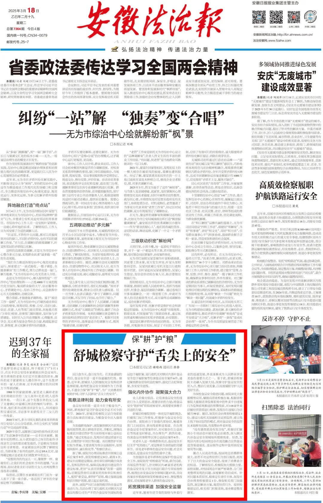 2025年3月18日《安徽法治报》头版
