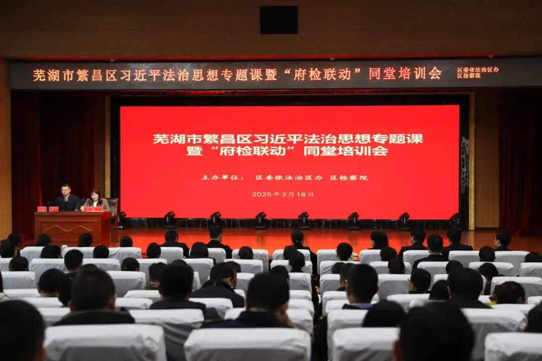 3月18日,芜湖市繁昌区检察院联合区委依法治区办共同举办一场同堂培训。培训特邀请安徽师范大学法学院院长、党委副书记郭泽强教授进行专题授课。繁昌区检察院党组书记、检察长谢谢主持,区检察院全体干警、各执法单位及执法机构负责人参加培训。