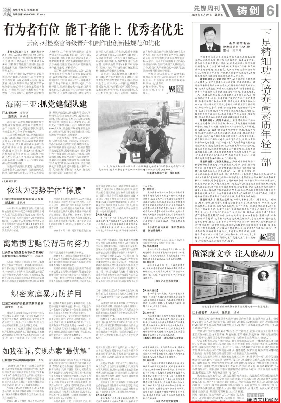 安徽省宁国市检察院秉承“勤政为民”工作理念,把强化廉洁文化建设作为重要工作来抓,坚持思想育廉、阵地润廉、家风树廉、制度固廉,积极构建廉而有为、清而善为、勤而乐为的干事创业环境,为检察事业发展注入“廉动力”。