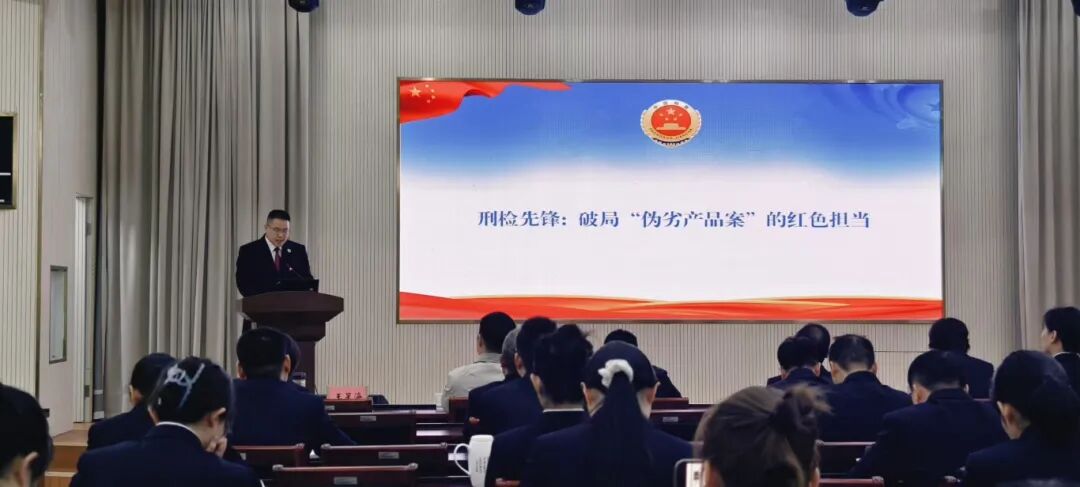 活动开场,烈山区检察院刑检部门办案检察官以《党建淬炼忠诚检魂—伪劣灭火器网络黑产案办案实录》为题,讲述了办理潘某某生产、销售伪劣产品案的历程。面对跨区域取证难、证据庞杂等挑战,检察机关成立临时党支部,组建党员先锋队,带头攻克证据难题、追赃挽损,展现了党员干警在疑难复杂案件中冲锋在前、攻坚克难的担当精神。“临时党支部不仅是战斗堡垒,更是凝聚共识的红色纽带”,办案检察官在讲述中感慨道,“党员干警带头冲锋,白天走访调查,夜间分析数据,正是这份‘红色信仰’让我们突破瓶颈,守护了百姓的生命安全。”