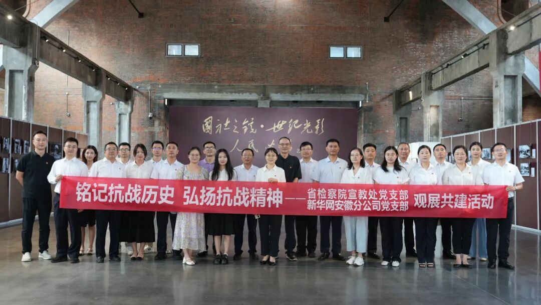 为深入学习贯彻习近平总书记在纪念中国人民抗日战争暨世界反法西斯战争胜利80周年大会上的重要讲话精神,9月15日,安徽省检察院宣传教育指导处党支部与新华网安徽分公司党支部联合开展“铭记抗战历史 弘扬抗战精神”观展共建活动,组织党员同志观看由新华社主办的“国社之镜·世纪光影之人民必胜”艺术展,进一步弘扬伟大爱国主义精神、伟大抗战精神。