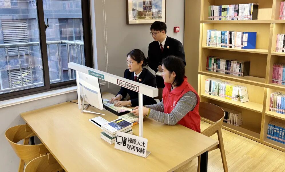 2025年10月,安徽省芜湖市镜湖区检察院干警与“益心为公”志愿者到城市书房体验无障碍阅读设施改建情况。
