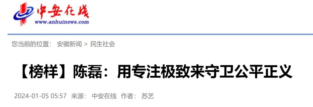 陈磊的名字里有三块“石头”,人如其名,工作生活中,陈磊一向勤恳质朴,铁面无私,像石头一样坚韧,也像石头一样执着。从检14年来,他始终扎根办案一线,勇挑重担、勤于钻研,炼就了一身过硬的办案本领,先后被评为全国检察机关扫黑除恶专项斗争优秀个人、全国打击危险废物环境违法犯罪专项行动表现突出个人、全省涉军维权工作先进个人、安徽省检察业务专家、安徽省优秀办案检察官等。2023年12月20日,最高人民检察院表彰了59名“全国模范检察官(检察干部)”,宿州市人民检察院第三检察部一级检察官陈磊名列其中。