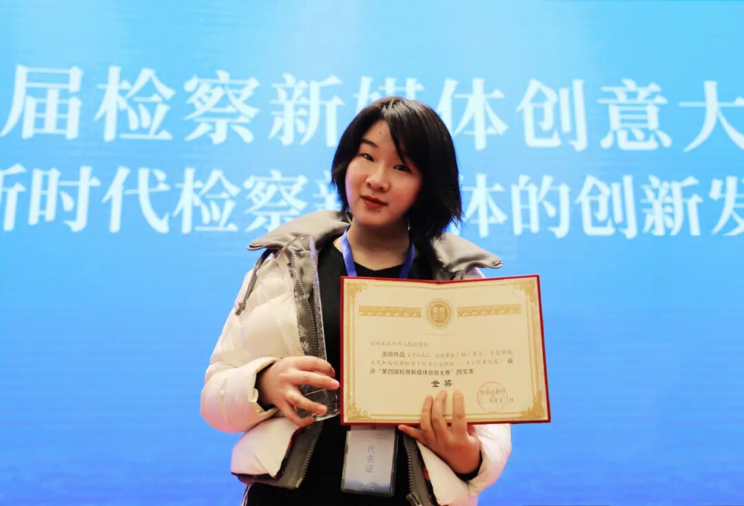 ▲刘晨在第四届检察新媒体创意大赛颁奖会现场领奖。