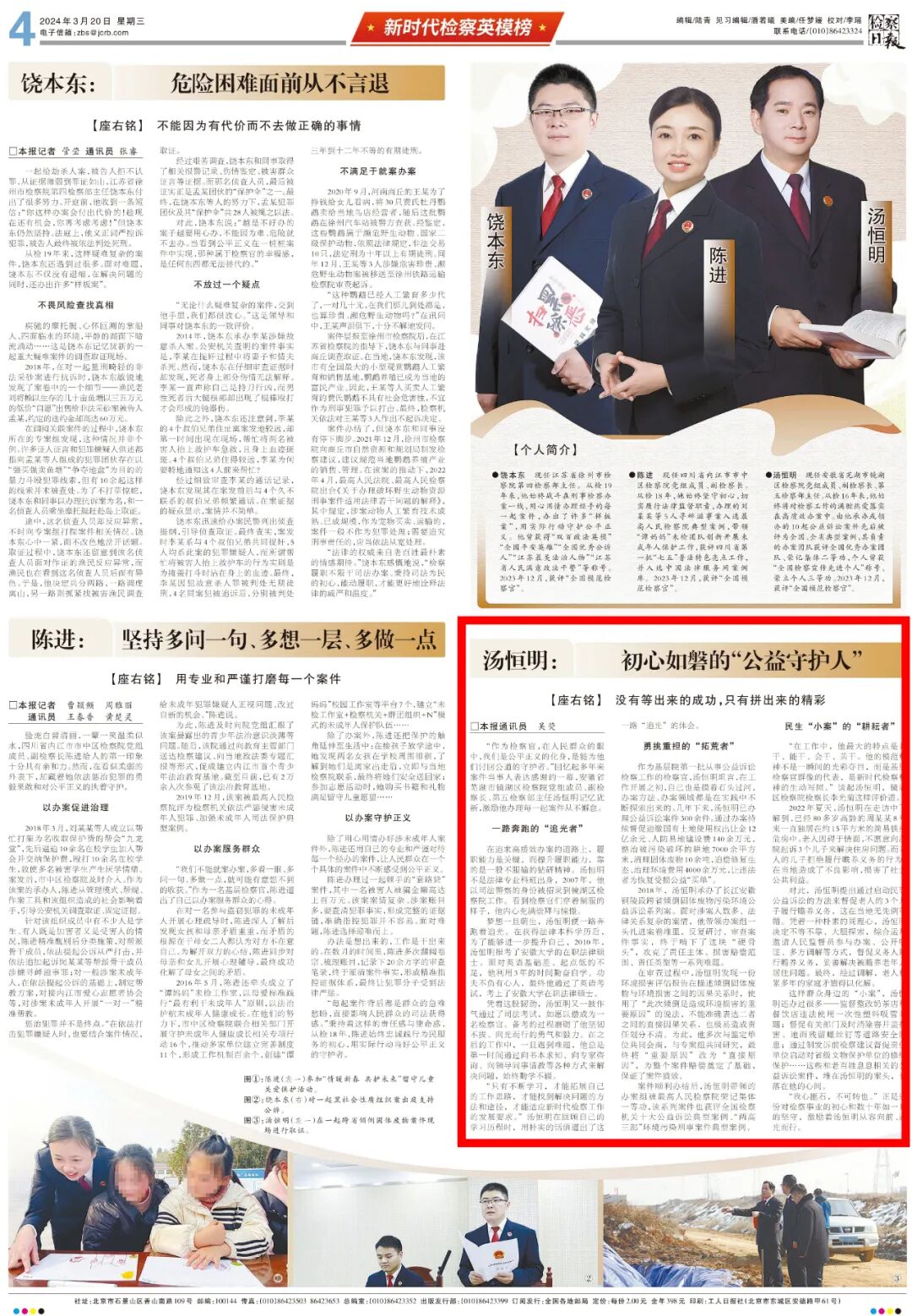 2024年3月20日《检察日报》4版 新时代检察英模榜