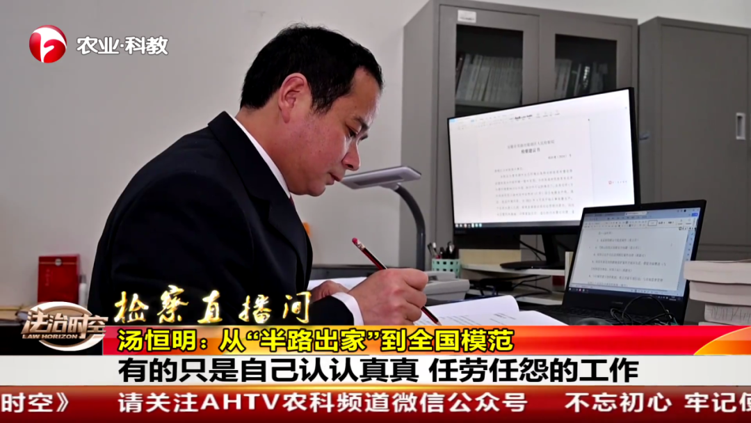 【导语】从检16年,从一个“法律外行人”到“全国模范检察官”,他始终满怀对法治的坚定信仰,以梦为马、勤勉履职,奔走在为人民追求公平正义的路上;经他承办的多起案件先后被评为全国、全省典型案例,他就是全国模范检察官——芜湖市镜湖区人民检察院党组成员、副检察长汤恒明。