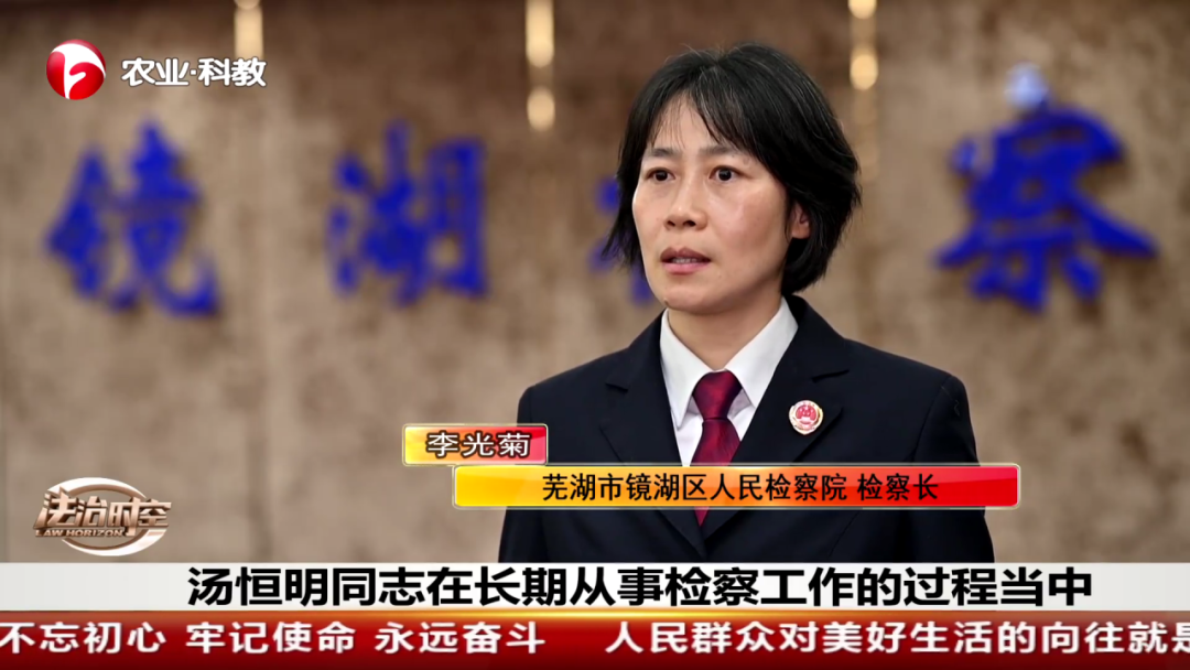 【同期声】芜湖市镜湖区人民检察院党组成员 副检察长 汤恒明:我觉得法律是非常神圣的, 它是维护公平正义的最后一道防线,我觉得从事法律工作也是非常光荣的。