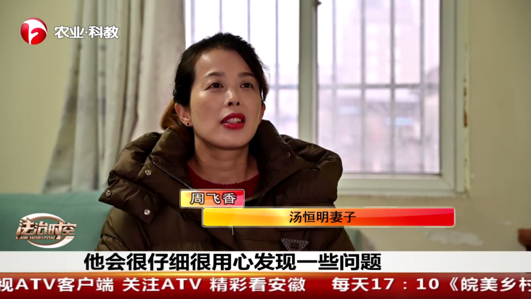 【同期声】汤恒明妻子 周飞香:在平常的时候,就是生活中我们一道有时候出去,散步啊走路啊,他会很仔细很用心发现一些问题,就是有存在一些公共安全隐患,他都会记录下来。