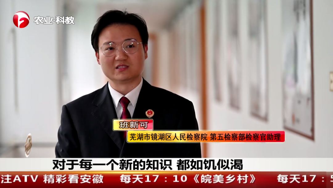 【同期声】镜湖区人民检察院 第五检察部检察官助理 班新可:他在每一个岗位都特别兢兢业业的,认真学习,对于每一个新的知识,都如饥似渴。