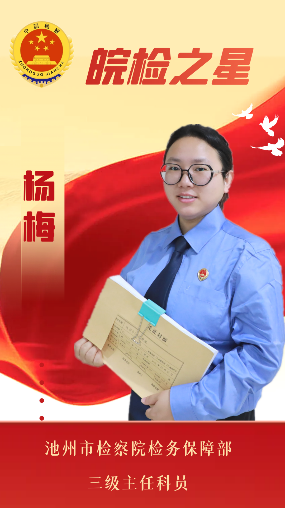 如果用一种颜色来形容她,那大海般的蓝色最贴切了,因为她既有海蓝色的宁静、坚韧,又有海蓝色的温暖、稳妥。她就是池州市检察院检务保障部三级主任科员杨梅,在检务保障部会计岗位上,她任劳任怨、兢兢业业、忘我奉献,做好财务管理、强化后勤服务,在检务保障一线挥洒青春汗水,干出不平凡的业绩。