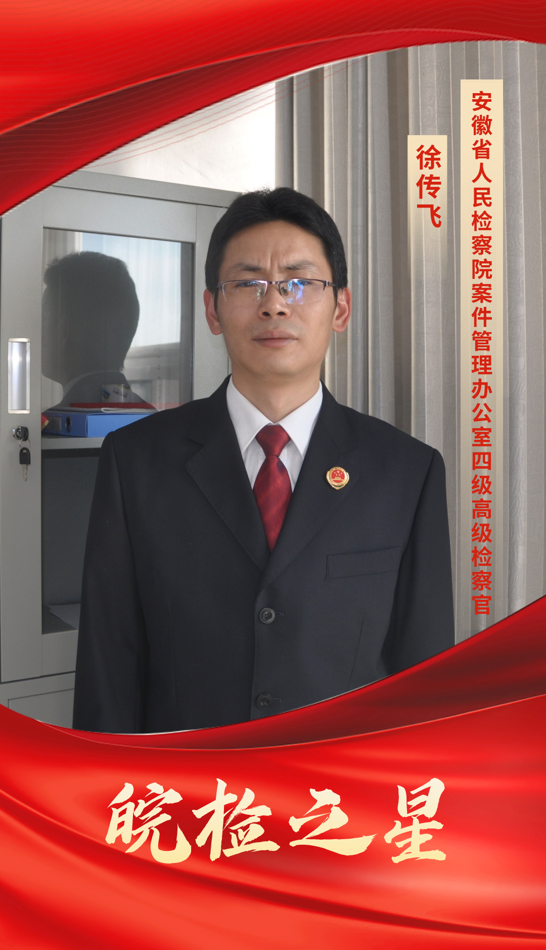 徐传飞,安徽省人民检察院案件管理办公室四级高级检察官。从检以来,他一直在案件管理工作中默默耕耘,平凡却不平庸,在普通岗位上燃烧青春,发光发热,不遗余力贡献自己的力量。曾多次被评为省检察院机关优秀共产党员,先后入选省检察院政治巡(督)察人才库、全国检察机关案件管理人才库。