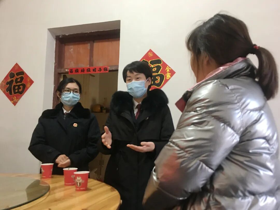 ▲王微(中)对一起涉嫌虐待儿童案件的被害人进行回访。