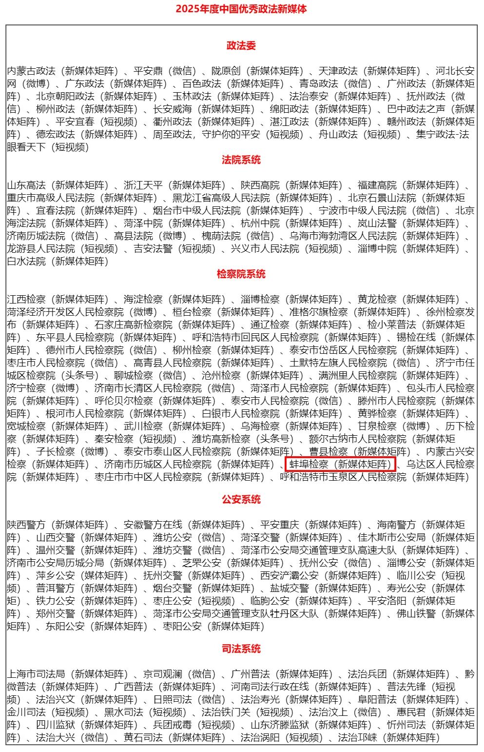 2025年度中国优秀政法新媒体