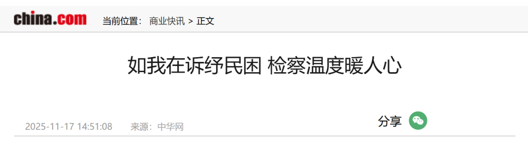 文章:《如我在诉纾民困 检察温度暖人心》