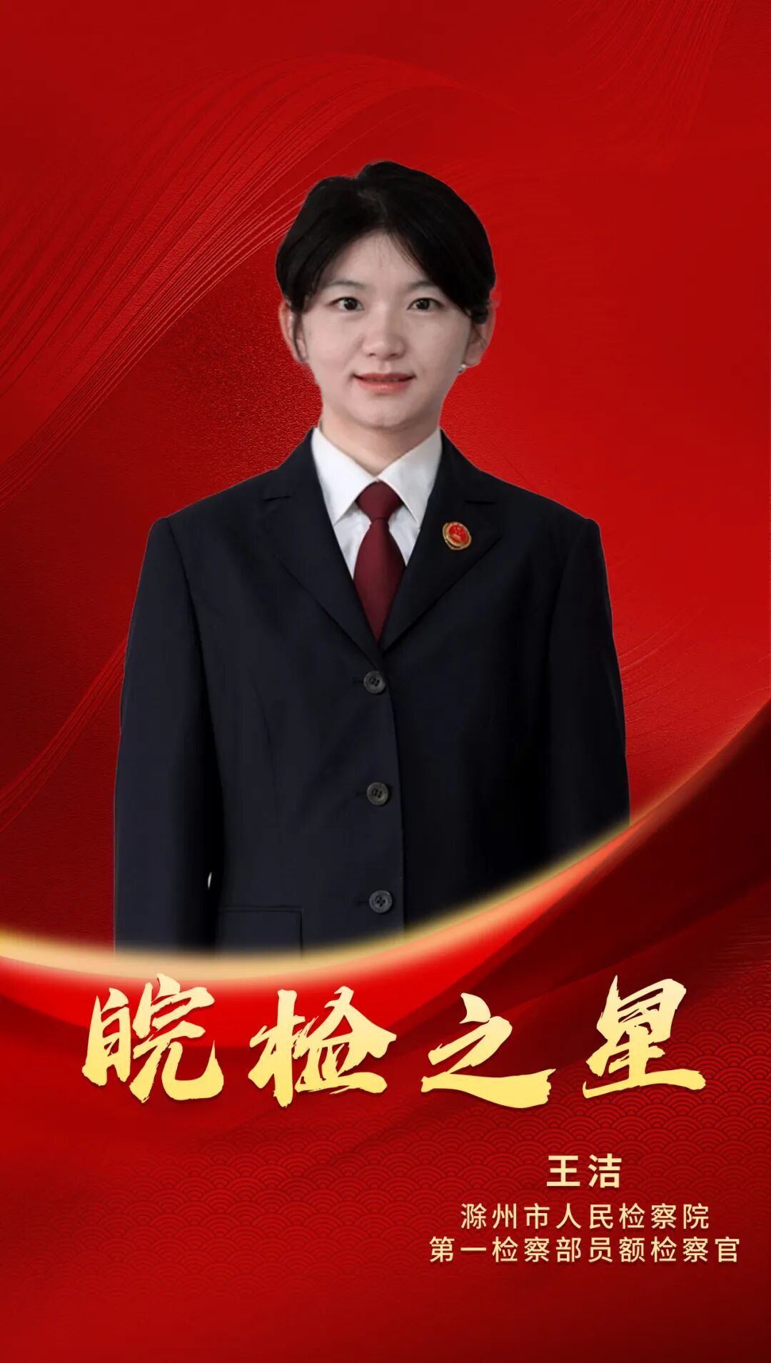“立志而圣则圣矣,立志而贤则贤矣”,这句座右铭始终照耀着王洁的检察征程。十一年来她将“忠诚、为民、公正、廉洁”融入血脉,先后荣获“滁州市优秀青少年维权卫士”“滁州市十佳公诉人”“安徽省十佳公诉人”“安徽省打击侵权假冒工作先进个人”“安徽省优秀共青团员”“全国优秀共青团员”等多项荣誉,并荣立三等功。她的故事印证着:正义需要守护者,法治需要燃灯人——而她,正以永不停歇的脚步,在新时代的法治征程上续写着“执法如山兼怀似水,持心如衡以理为平”的动人诗篇。