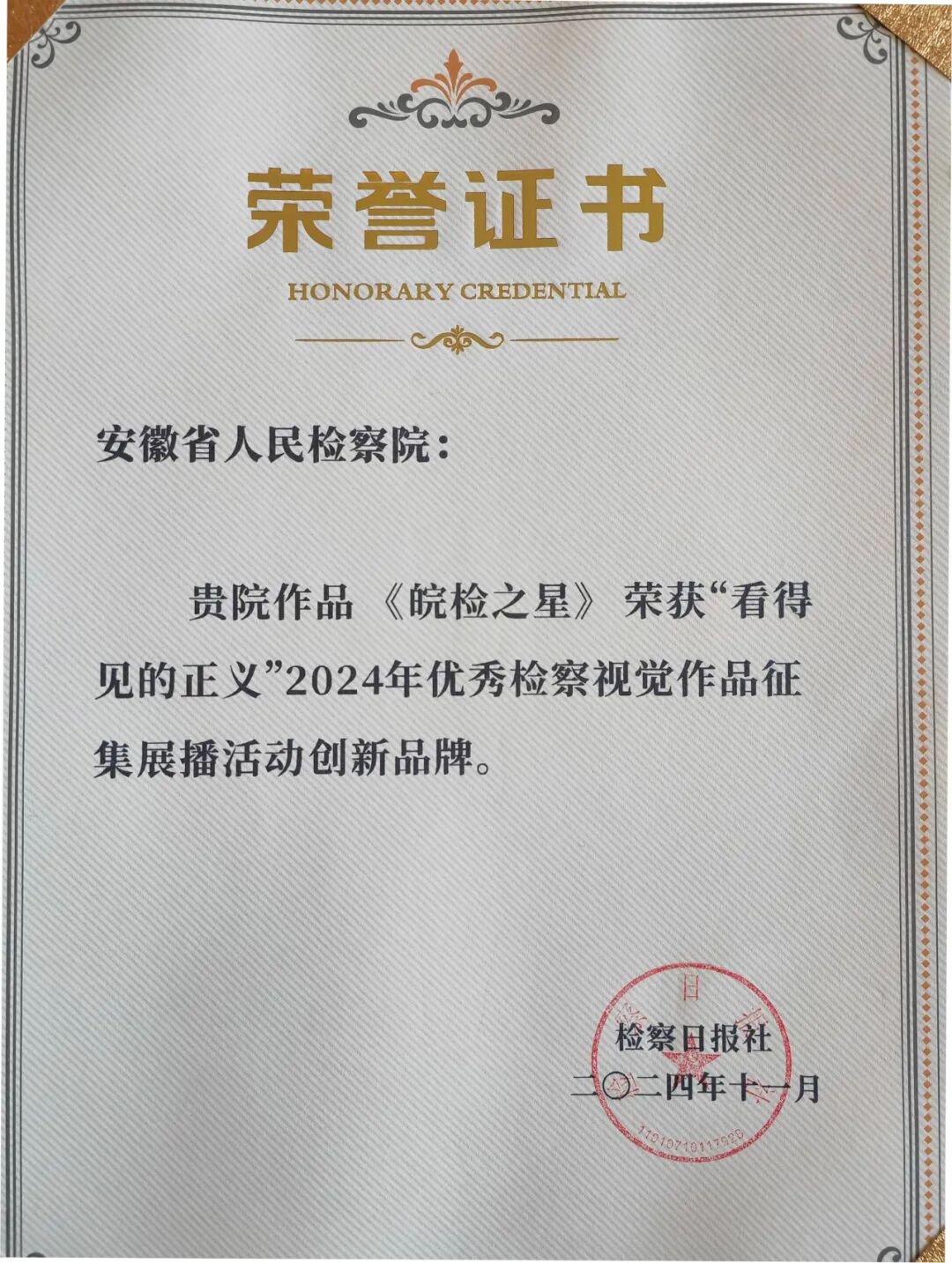 ▲安徽省检察院《皖检之星》荣获创新品牌