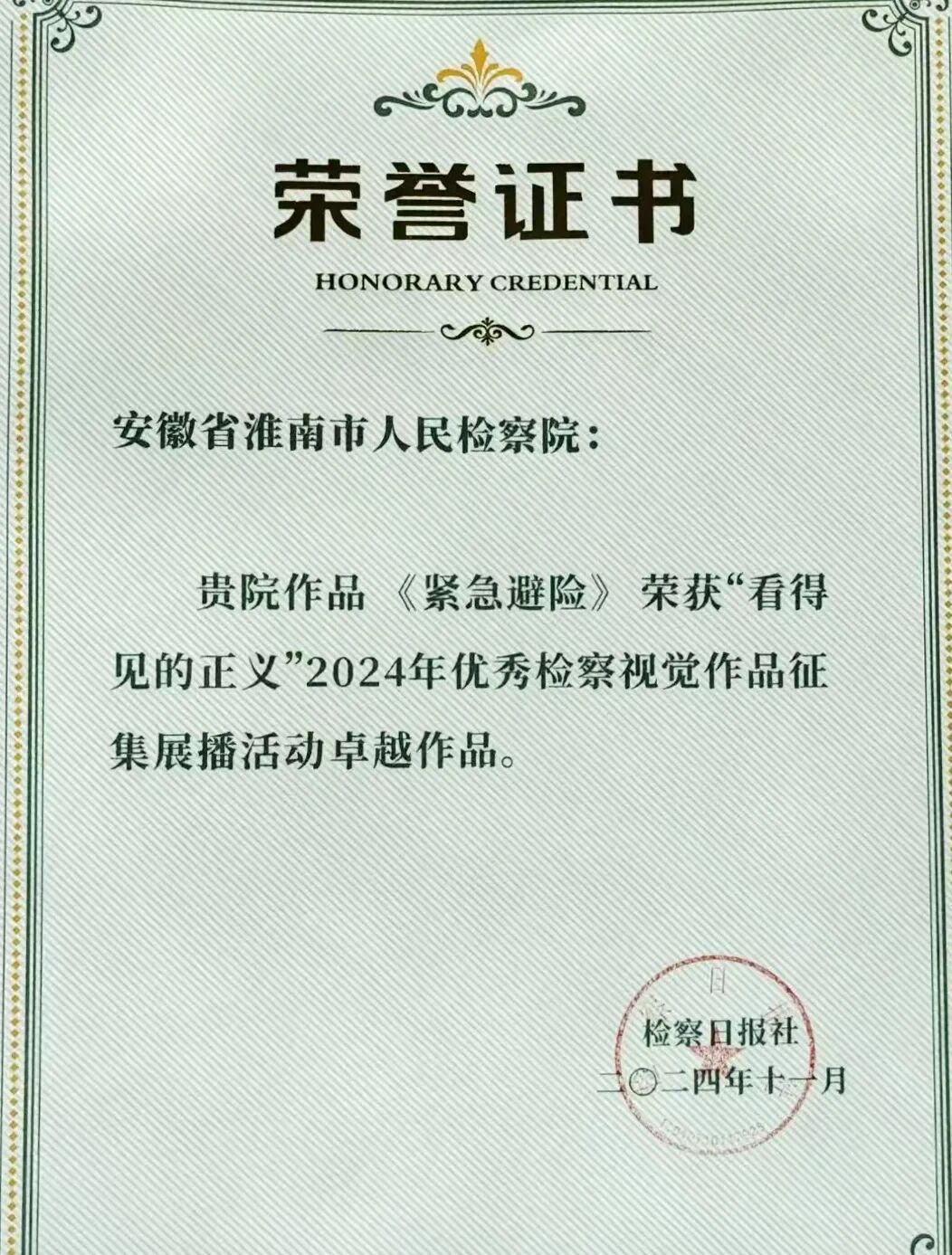 ▲淮南市检察院微电影《紧急避险》荣获卓越作品