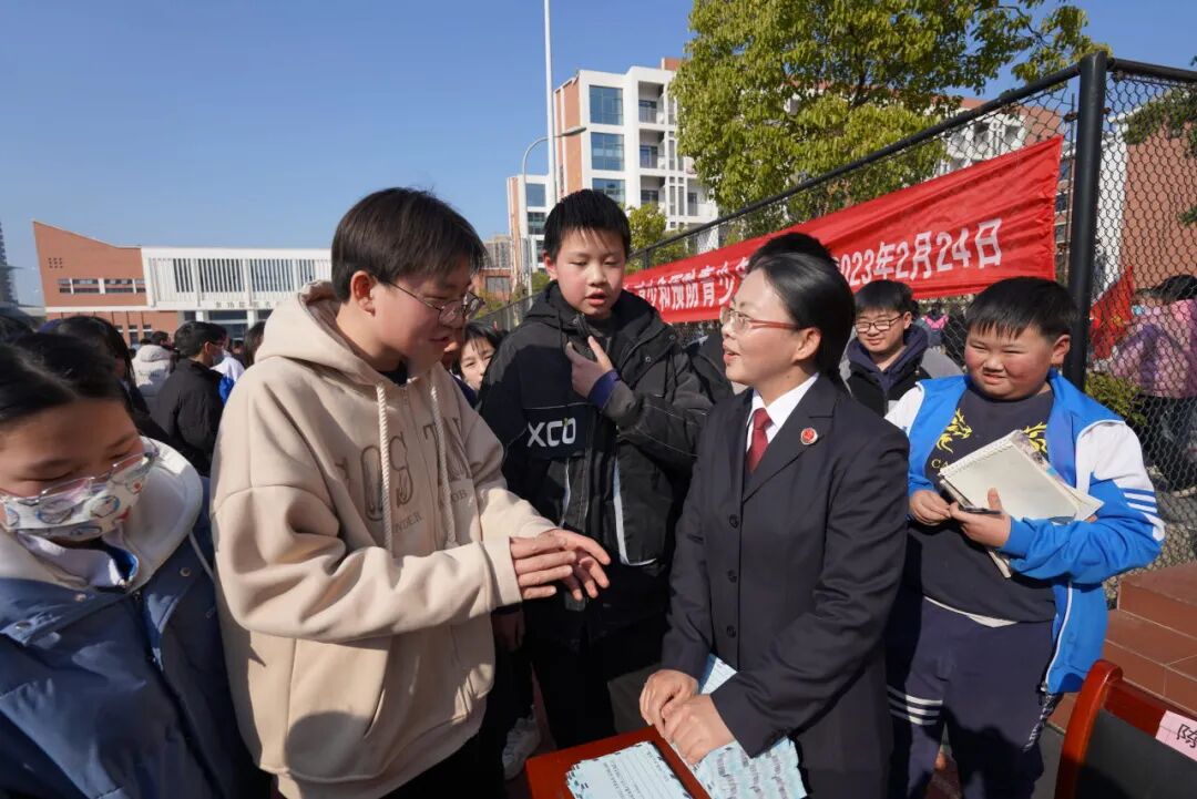 肥东县检察院干警与学生们互动交流。