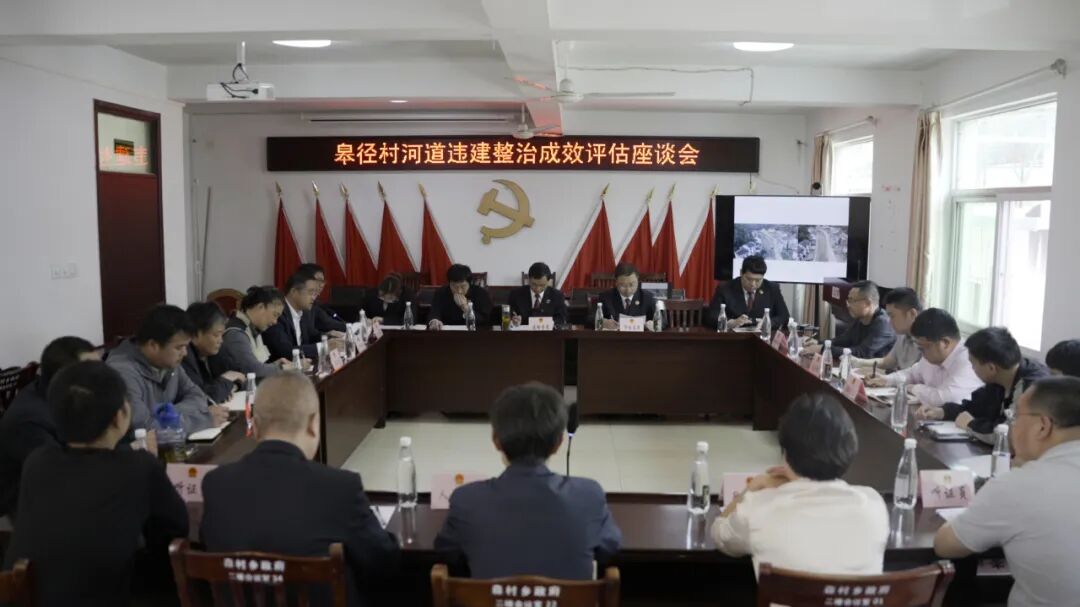 在皋径村村委会内召开河道违建整治成效评估座谈会