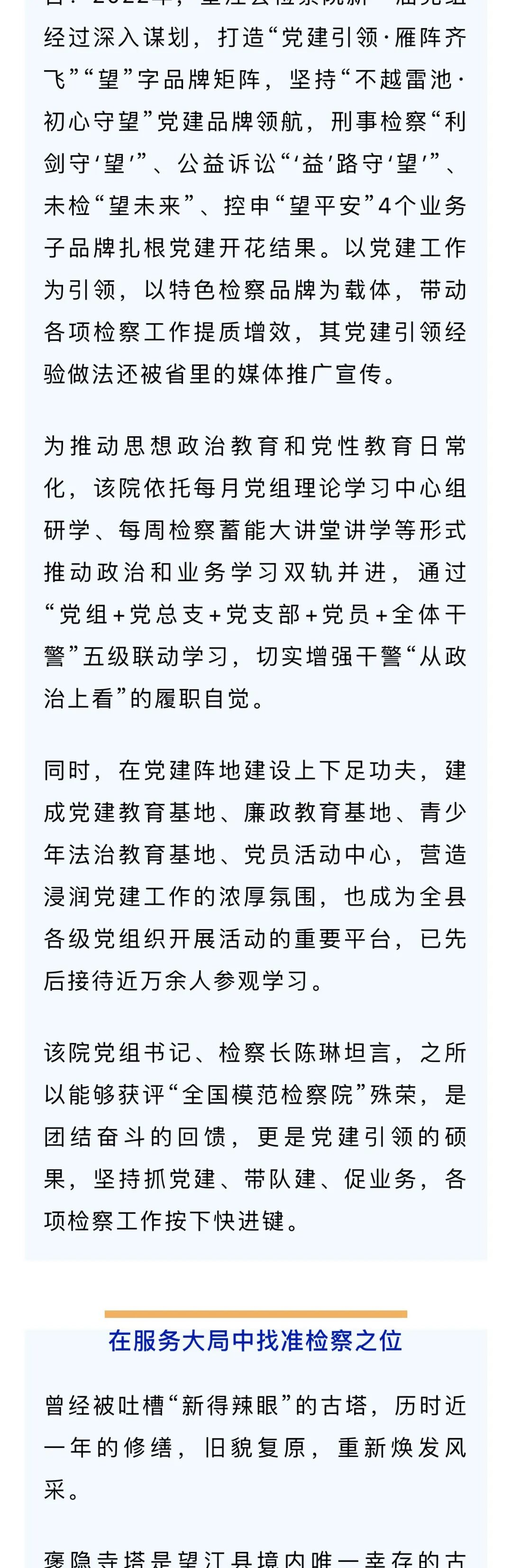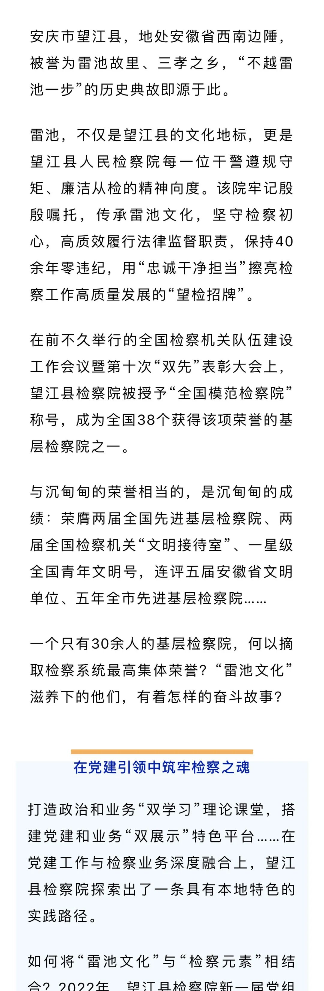 ——安徽省望江县检察院从“基层小院”成为“全国模范”纪实