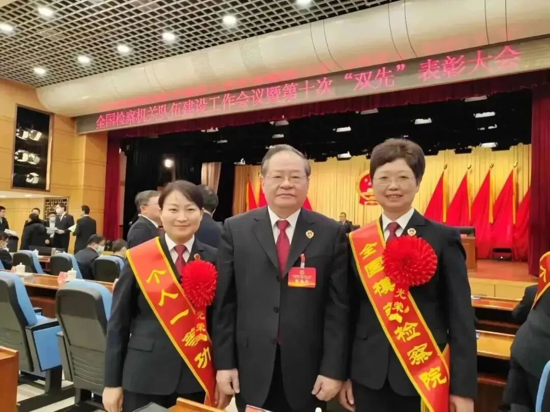 图为2023年12月20日,安徽省人民检察院检察长陈武在最高检主会场接见安徽进京领奖代表(右一为望江县人民检察院检察长陈琳)。