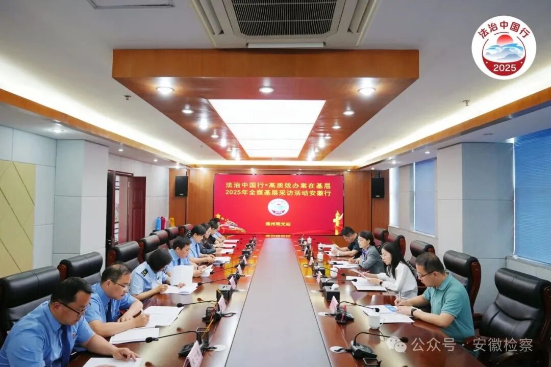 “法治中国行·高质效办案在基层”安徽行记者在滁州明光市检察院进行集中采访。