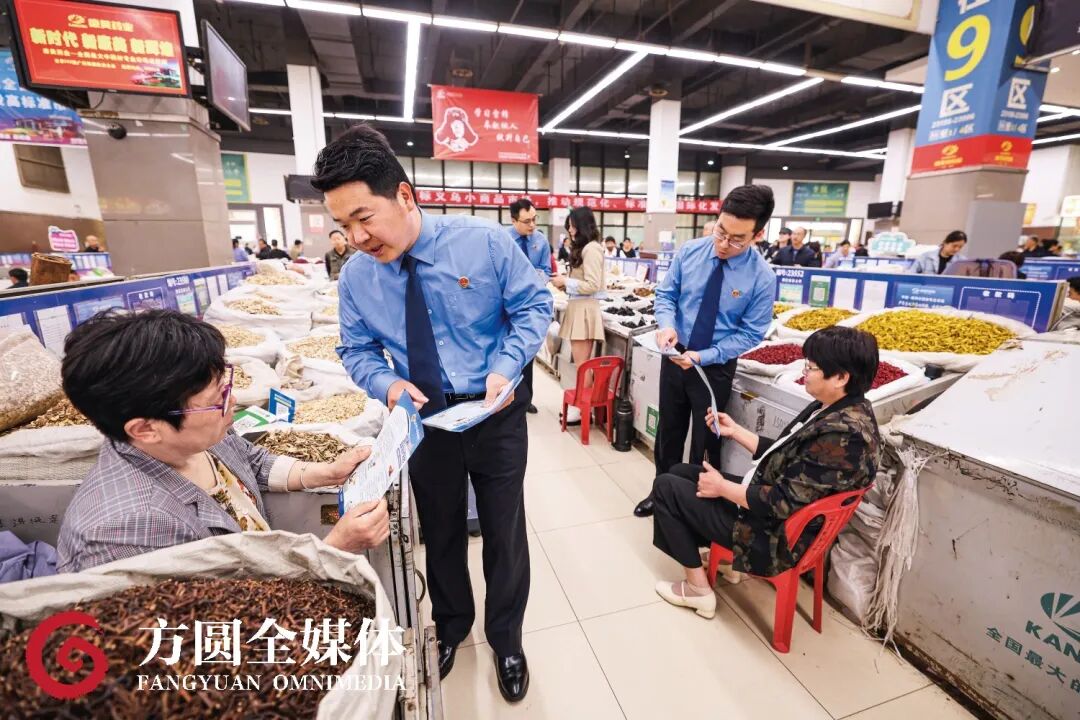 4月26日是世界知识产权日,4月25日,安徽省亳州市检察院检察官在亳州中药材专业市场向商户介绍知识产权相关知识。