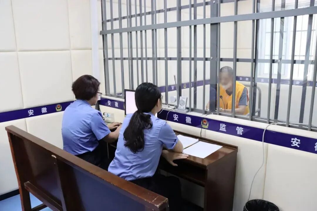 ▲2023年7月6日,经六安市人民检察院指定,金寨县人民检察院审查起诉李某某、张某某民事枉法裁判案,办案人员到看守所提审犯罪嫌疑人张某某。