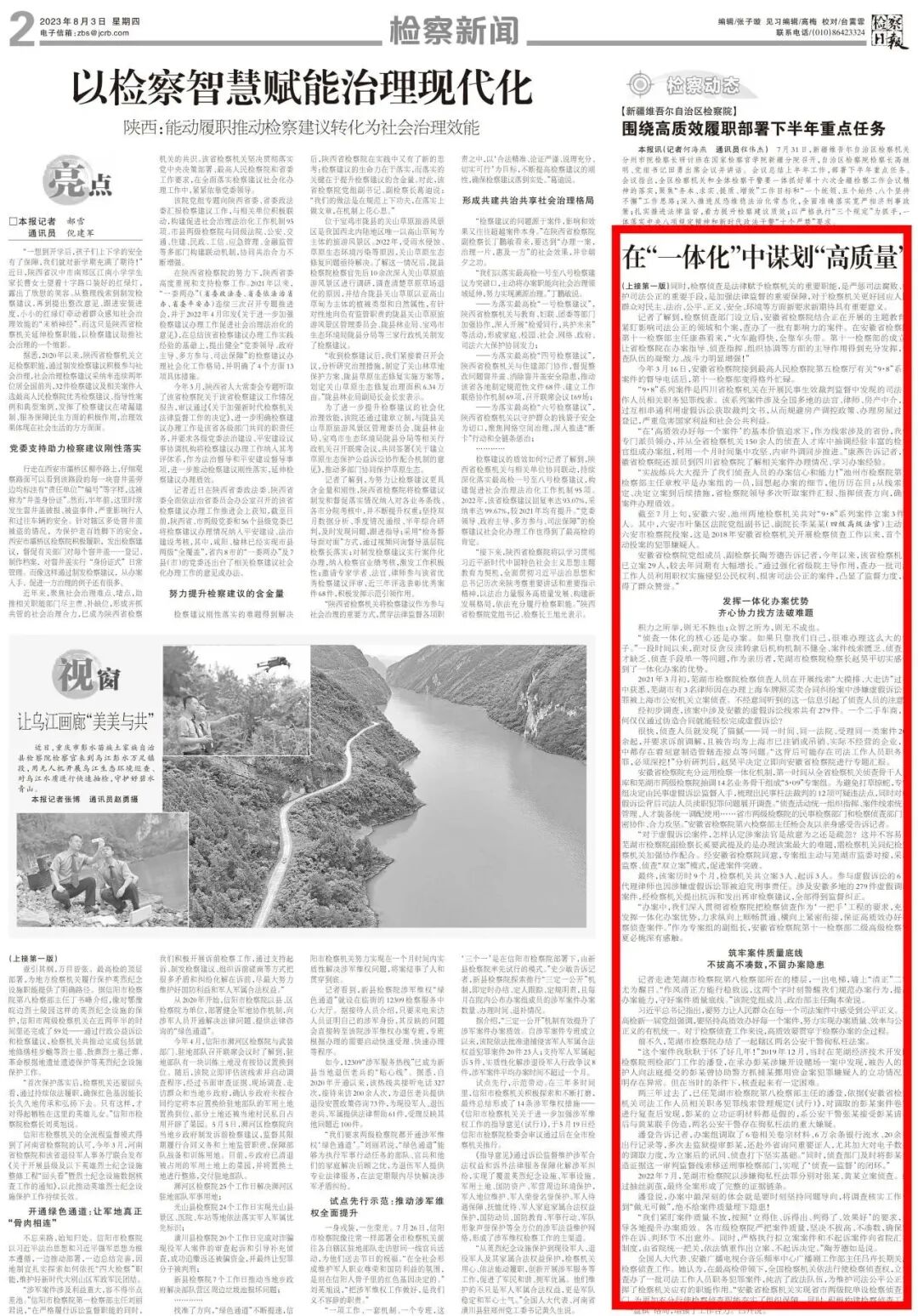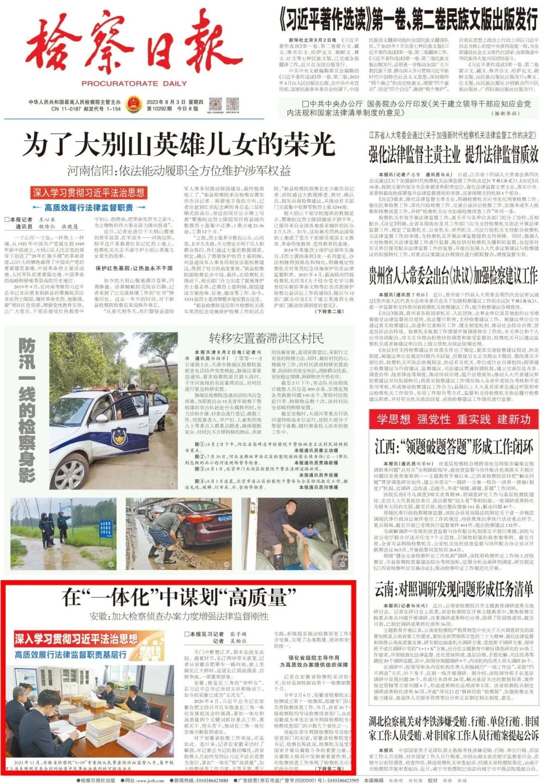 对于安徽省检察工作来说,亦是如此。连日来,记者在安徽采访时了解到,牢记着总书记的殷切嘱托,该省检察人员始终坚持以习近平法治思想为指引,紧扣“一体化”和“高质量”,加大检察侦查工作力度,不等不靠、勇于实践,积极稳妥推动检察侦查工作稳步发展,实现了办案数量、质效和安全的统一。