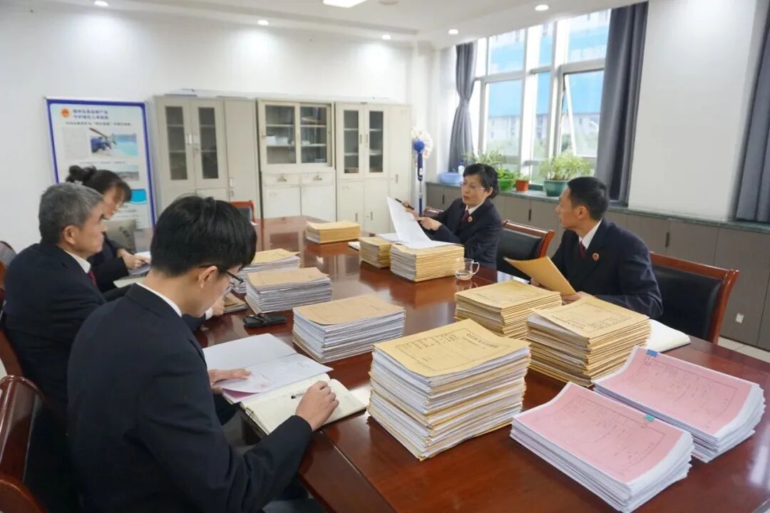 ▲2023年5月17日,六安市检察院检察长唐保银带领专案组办案人员到安徽省检察院汇报李某某、张某某民事枉法裁判案侦办情况。