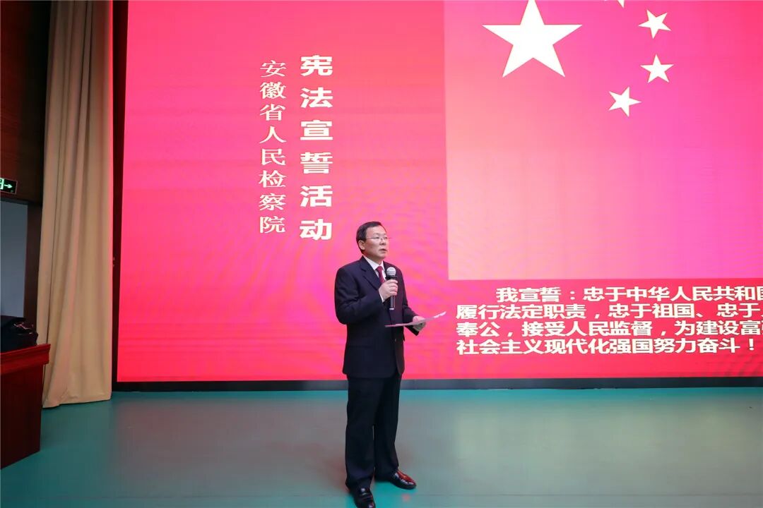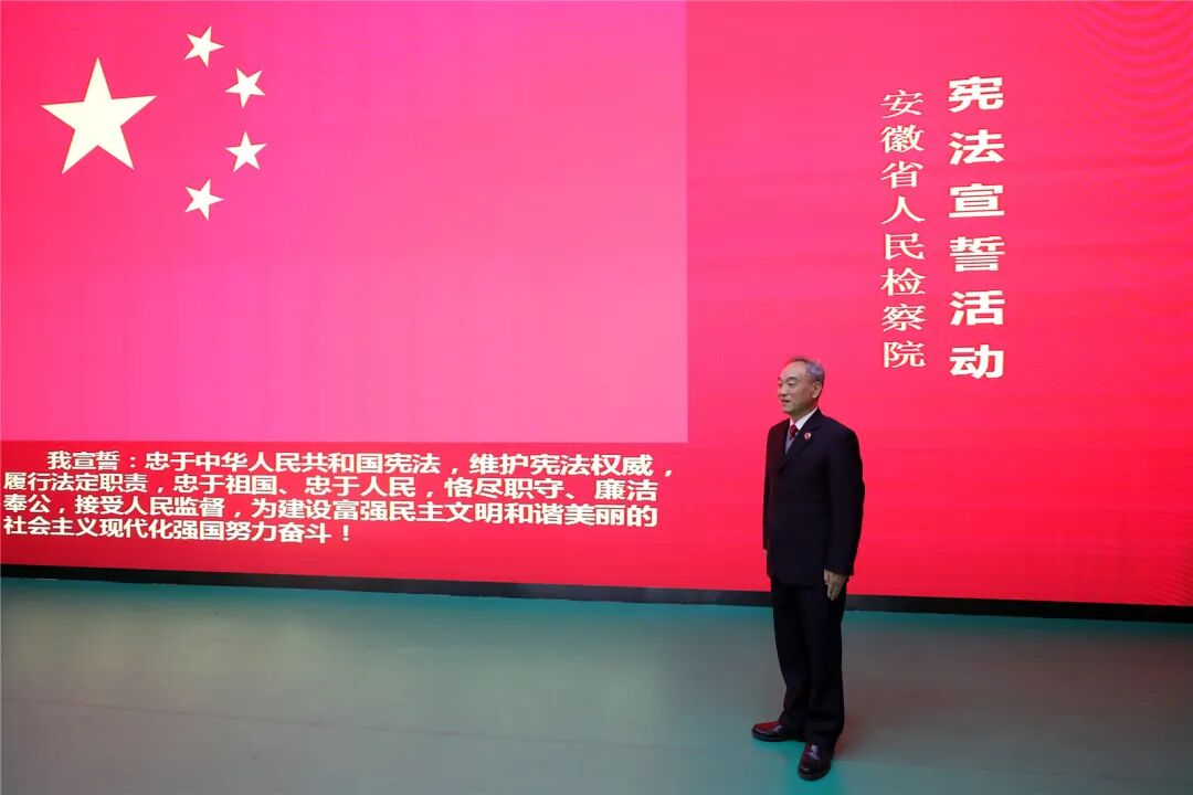 12月4日是第十个国家宪法日,安徽省人民检察院举行宪法宣誓仪式。省检察院及派出院26名新任检委会委员、检察员和部门负责人参加宪法宣誓。省检察院党组成员、政治部主任周勇到场监誓,省检察院二级巡视员吴贻伙主持宣誓,省检察院法律政策研究室主任吴润松领誓。
