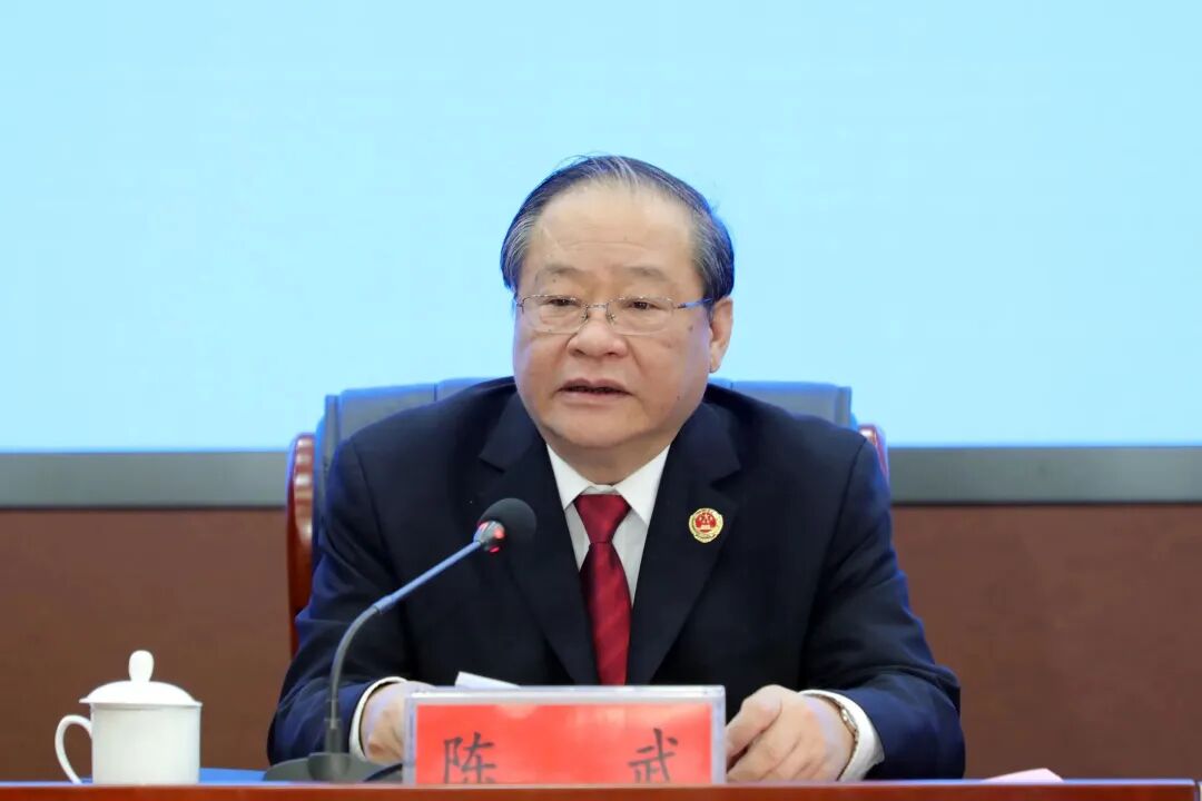 并讲话。省检察院党组书记、检察长陈武主持会议。