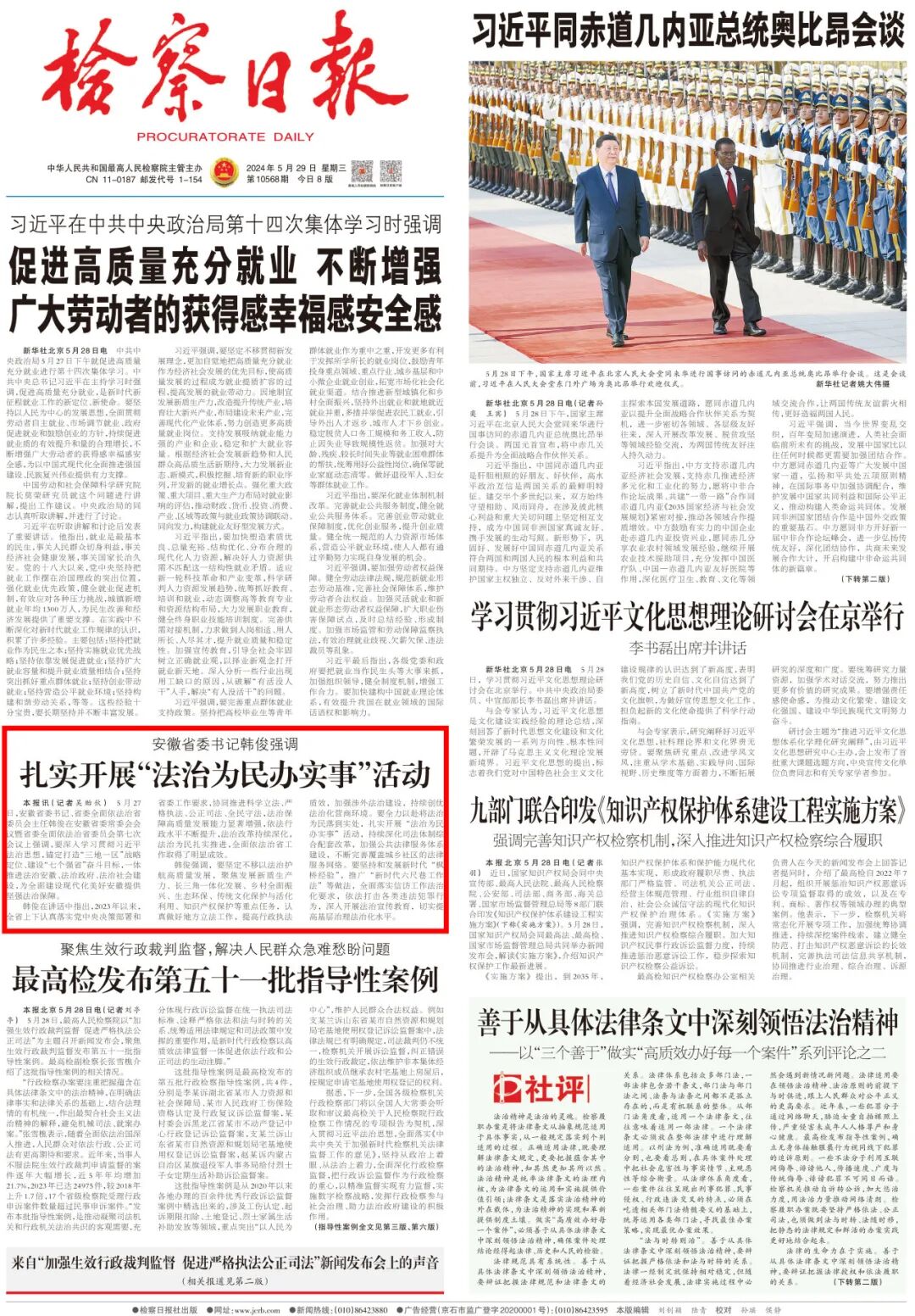 韩俊强调,要坚定不移以法治护航高质量发展,聚焦发展新质生产力、长三角一体化发展、乡村全面振兴、生态环保、传统文化保护与活化利用、知识产权保护等重点任务,认真做好地方立法工作,提高行政执法质效,加强涉外法治建设,持续创优法治化营商环境。要全力以赴将法治为民落到实处,扎实开展“法治为民办实事”活动,持续深化司法体制综合配套改革,加强公共法律服务体系建设,不断完善覆盖城乡社区的法律服务网络。要坚持和发展新时代“枫桥经验”,推广“新时代六尺巷工作法”等做法,全面落实信访工作法治化要求,依法打击各类违法犯罪行为,深入开展法治宣传教育,切实提高基层治理法治化水平。