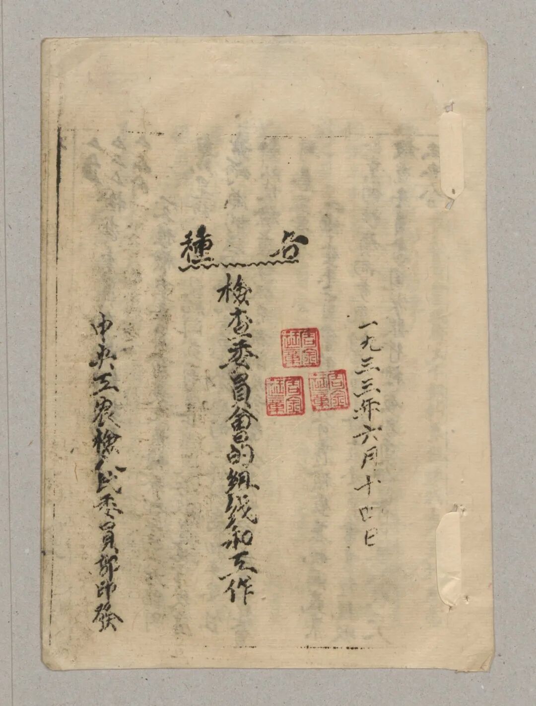 这是1933年6月14日中央工农检察人民委员部印发的《各种检查委员会的组织和工作》(下称《组织和工作》),尺寸为12.8×18厘米,收藏于中国国家博物馆。