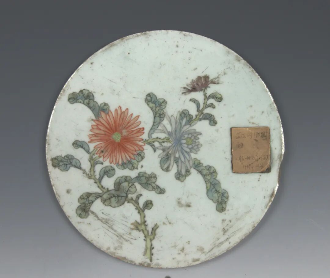 何叔衡使用过的白釉彩绘花卉纹瓷板画