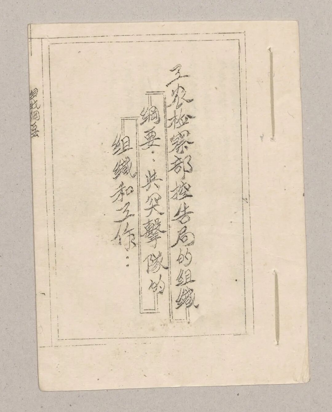 这是工农检察工作的两个法律文件——《工农检察部控告局的组织纲要》(下称《纲要》)《突击队的组织和工作》的合辑,收藏于中国国家博物馆。