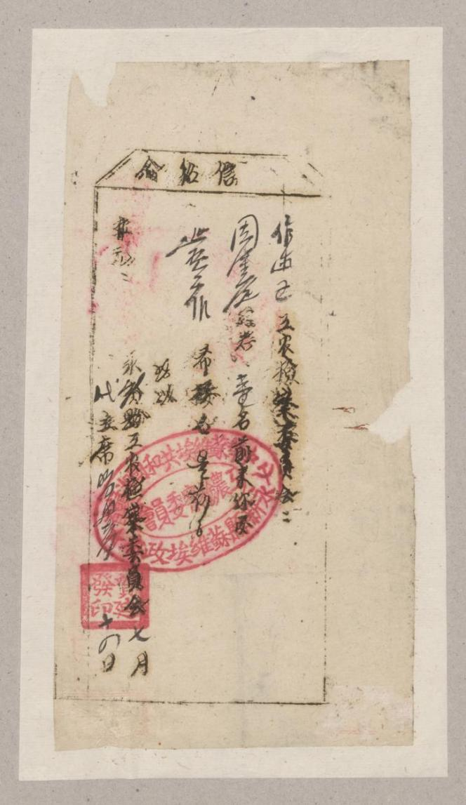 介绍信没有标注年份。1933年4月,中央工农检察人民委员何叔衡签发第三号训令,要求健全各级工农检察部,强调立即建立各级工农检察委员会。县级检察委员会由9人至21人组成,经常工作人员7人至9人;区级检察委员会由7人至15人组成,经常工作人员5人至7人。1933年9月,蒋介石调动百万兵力对中央革命根据地进行第五次“围剿”,对湘赣苏区“围剿”的兵力达10万人之多。1934年1月,永新县城被敌占领,省委机关被迫转移至永新象形。7月,撤销永新、永安两县苏维埃政府,建立永新中心县苏维埃政府。8月,红六军开始西征,离开湘赣革命根据地。结合以上史料综合判断,这封介绍信开具时间似应为1933年7月14日。