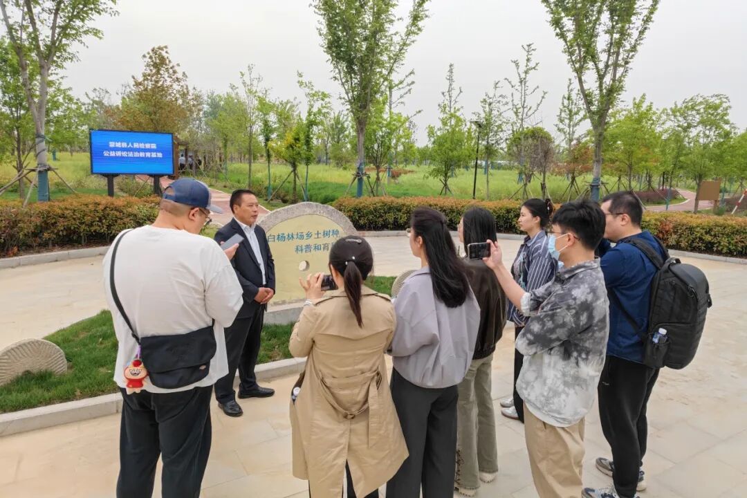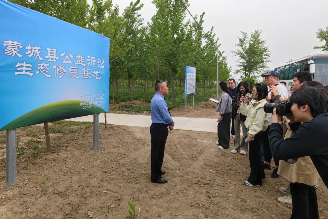 在蒙城县检察院公益诉讼履职点——白杨林场公益诉讼生态修复基地,采访团先后与蒙城县检察院检察官、县林业局、白杨林场有关负责同志对话,了解近年来蒙城县生态环境和资源保护领域公益诉讼案件办理情况以及环保工作现状。