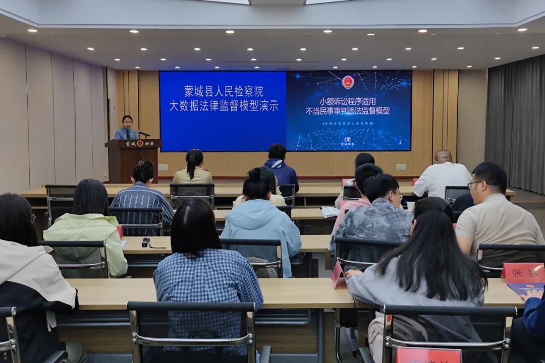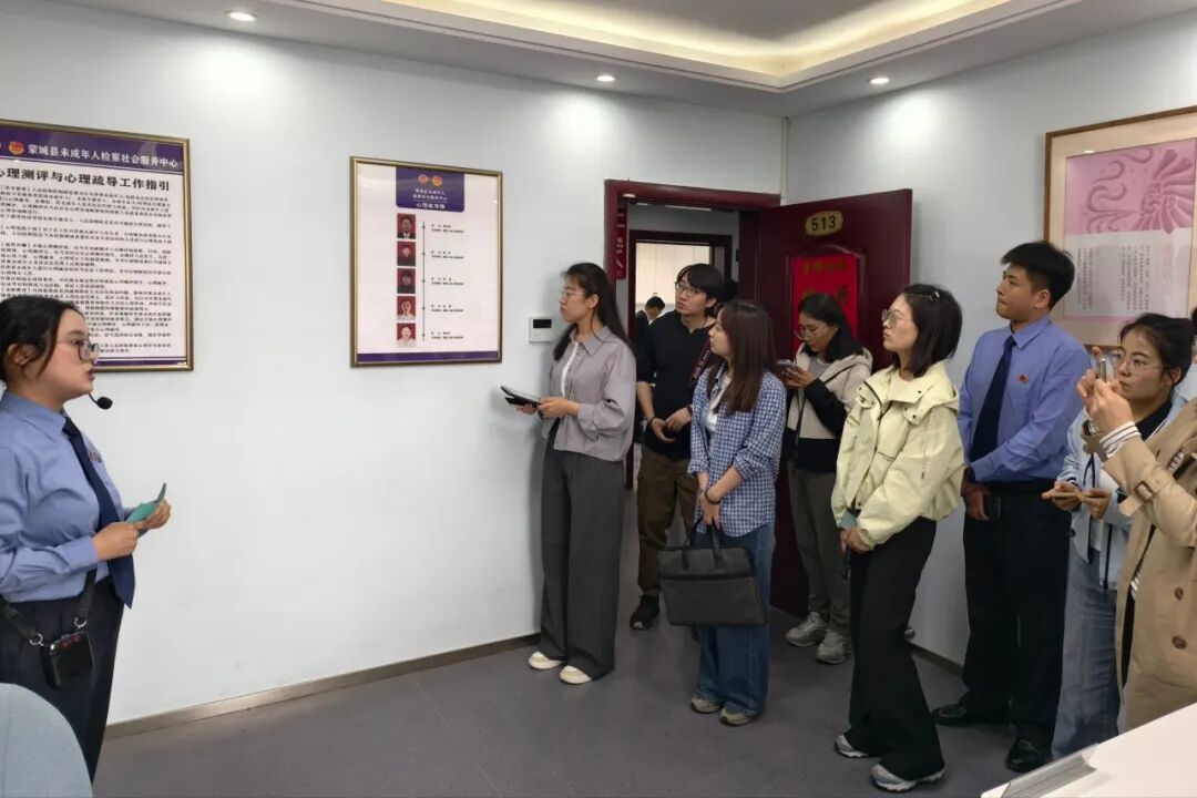 采访团首先来到蒙城县检察院,听取检察官介绍大数据法律监督模型创建及应用模型办案情况,感受数字检察赋能高质效办案带来的检察履职新变化。随后,采访团在检察官的带领下,前往蒙城县未成年人检察社会服务中心进行实地采访。