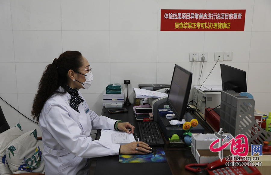 龙子湖区曹山街道卫生服务中心工作人员顾庆霞进行健康证办理操作流程。她介绍,申请人只需提供本人身份证到院来体检,然后她将体检报告存入医院系统,再进入到电子流程,将有专职医生进行体检审查,签字盖章,合格后方可录入电子健康证平台,电子健康证审查合格后,随时可查全国通用。 中国网记者 马旷/摄