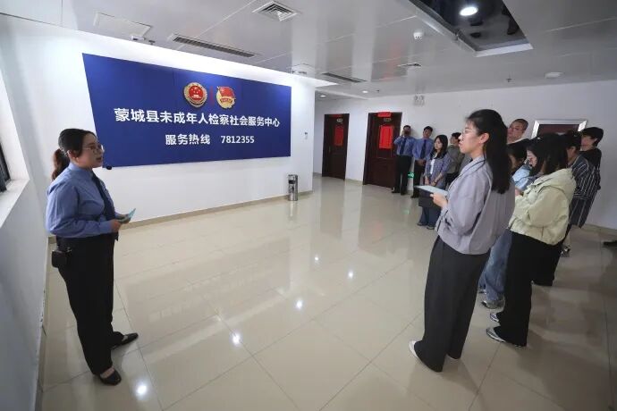 #新媒体走近一线检察#【安徽蒙城:“七彩观护蓝娃”保护少年的你】4月24日下午,采访团一行来到安徽省蒙城县未成年人检察社会服务中心,参观综合办公区、职业技能培训区、心理疏导室等。检察工作人员特别介绍,心理疏导室共有11名心理咨询师,为未成年人提供心理疏导服务,危机心理干预等服务。心理测评和心理疏导工作记录等资料会单独建档,妥善保存,严格执行保密制度。