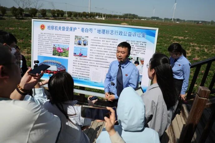 近年来,多地出现实体店或互联网平台在销售过程中违规使用、冒用“亳白芍”“亳菊”地理标志产品的情形,损害社会公共利益。对此,亳州市两级检察机关履行#公益诉讼#检察职能,督促辖区内的行政机关依法履行监管职责,整治违法使用“亳白芍”“亳菊”地理标志的行为,守护本地特色药材质量安全。同时,还会通过行政公益诉讼,督促行政机关加大对地理标志产品保护力度,依法维护注册登记企业的知识产权。“检察官时常过来蹲点,为企司法体检。他们会公开手机号码,随时接听企业来电,化解诉求。”药业工作人员向记者说道。