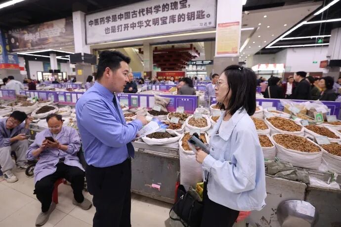 #新媒体走近一线检察#【安徽亳州:“益护药都”擦亮千年药都金字招牌】4月25日一早,采访团来到“世界中医药之都”亳州,作为全球最大的中药材集散中心和中医药文化传承基地,一幅“业兴企旺”的画卷正在亳州中药材专业市场交易大厅徐徐展开……亳州市检察院检察官李周向记者介绍,检察官会定期来市场进行普法宣传,明天是世界知识产权日,今天他们过来向商户普及知识产权相关知识。