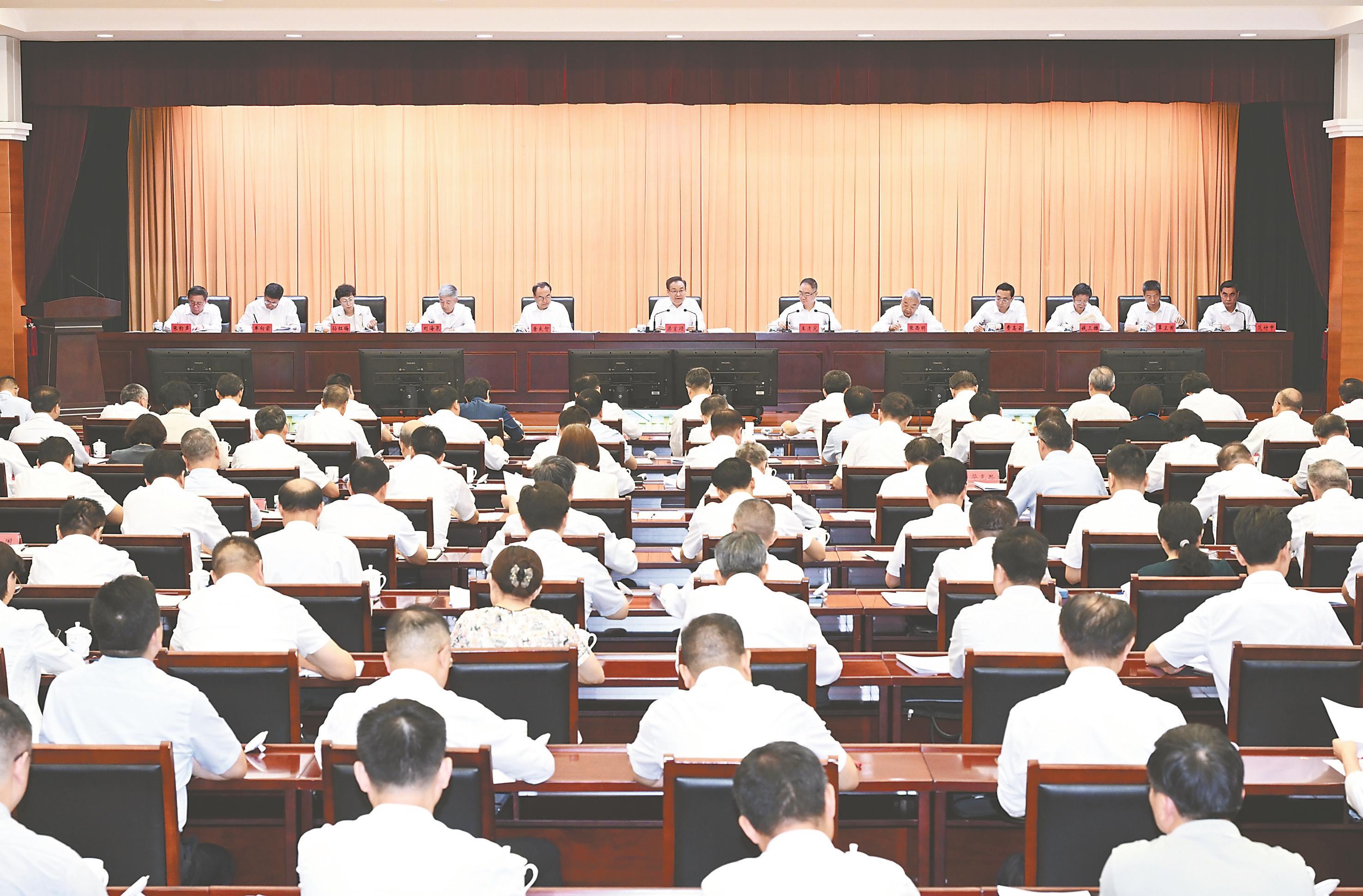 8月20日上午,全省深入推进长三角更高质量一体化发展大会在合肥召开,省委书记梁言顺出席会议并讲话。本报记者 杨竹 许昊 摄