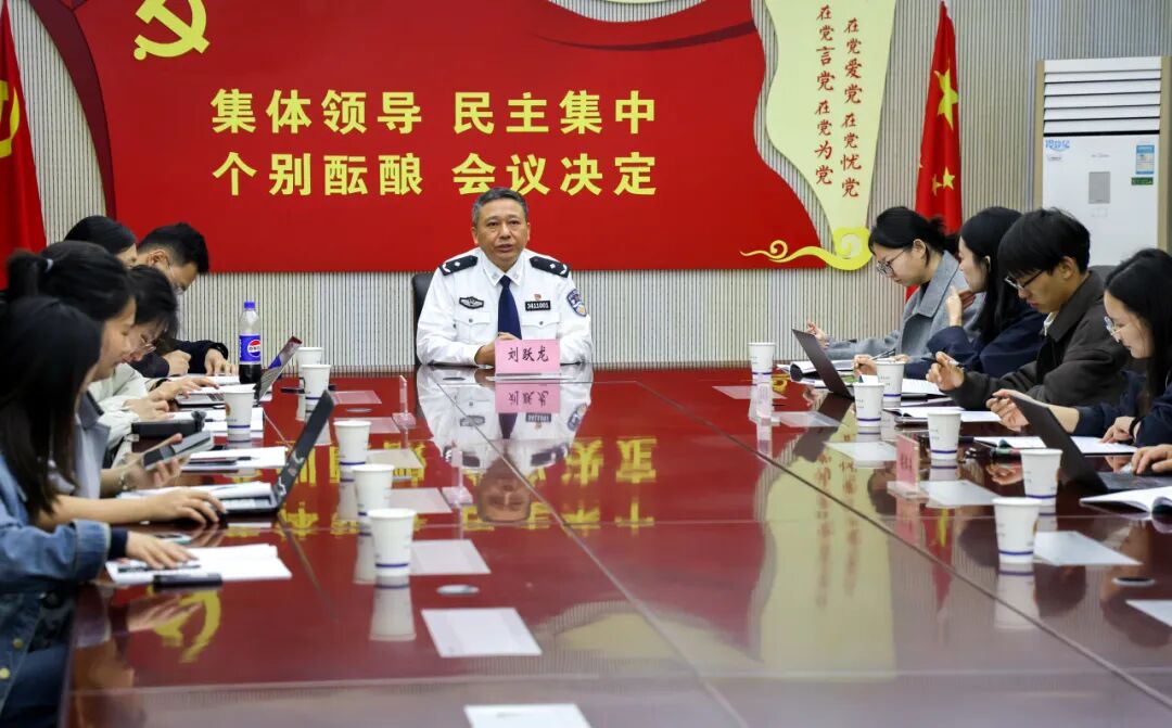 图为安徽省白湖监狱管理分局党委副书记、局长黄继军向采访团介绍检察机关与监狱协同配合情况。